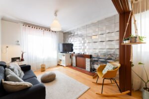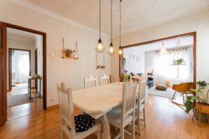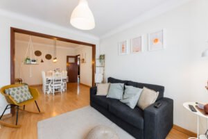 Inserido no primeiro piso de um edifício de pequena dimensão, composto apenas por este apartamento no piso superior e duas lojas no rés-do-chão, oferecendo maior privacidade e uma vivência mais reservada, distinta dos tradicionais prédios multifamiliares.